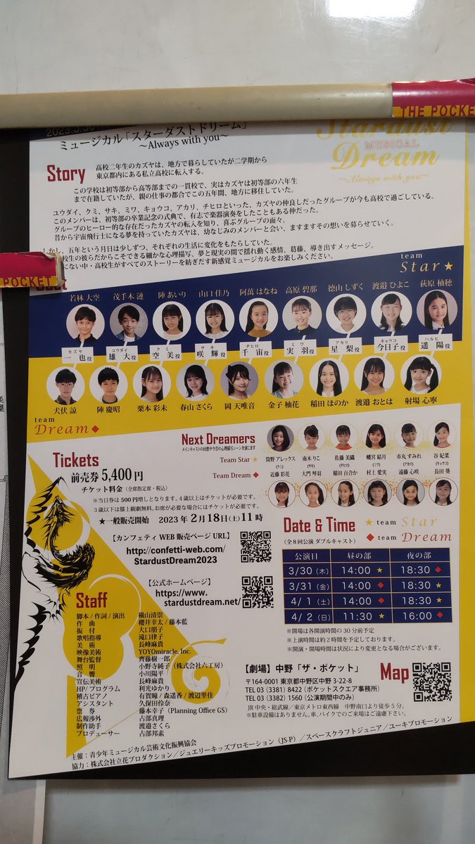 5. 2023/3/30夜『Stardust Dream』@中野ザ・ポケット 今夜は中野の小劇場でミュージカル『Stardust Dream』を観ます✨ 元ヤングシンバの犬伏涼くん他、子役出身のジュニアキャストの若いエネルギーを浴びて… https://t.co/OxfJaScLxg