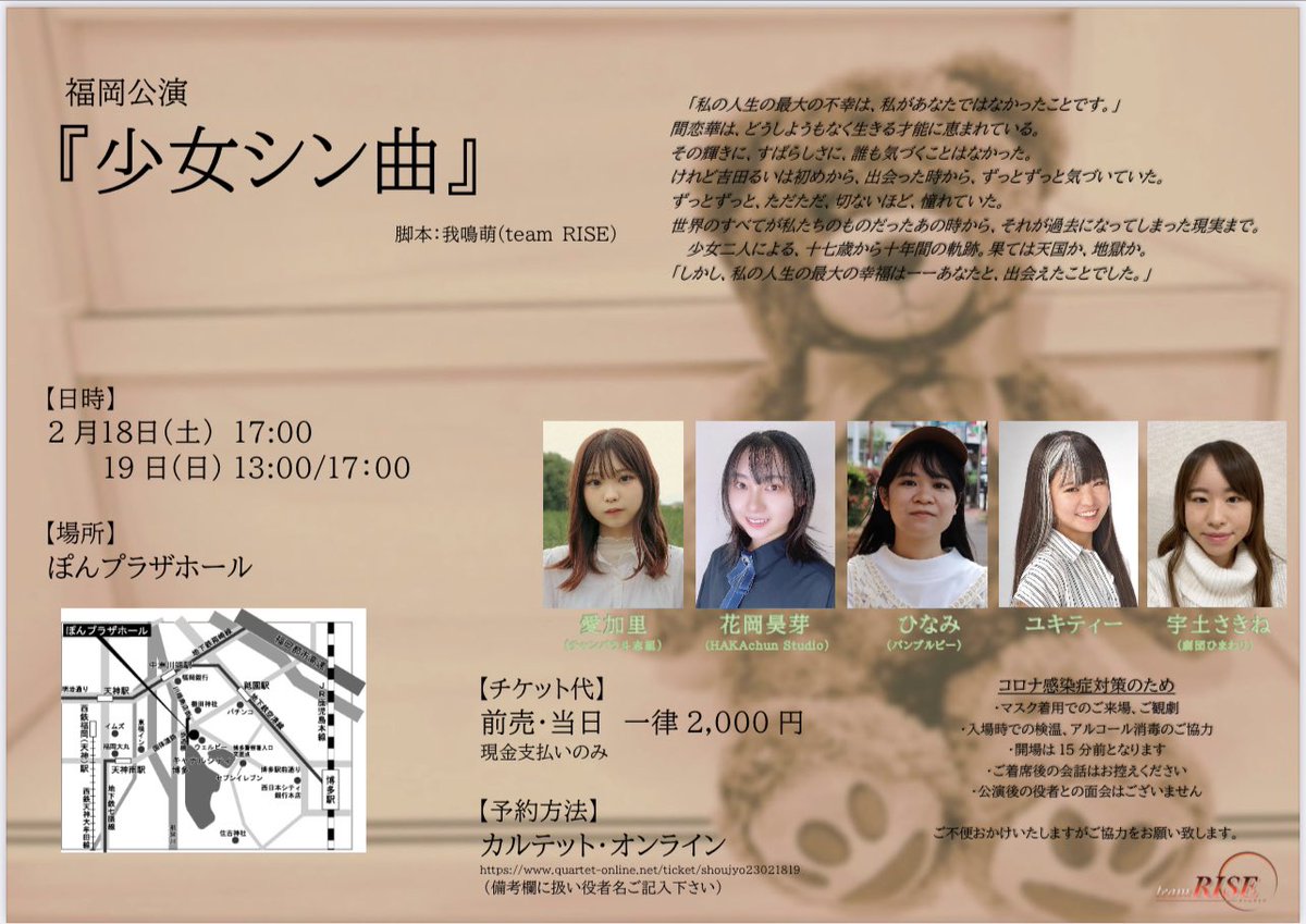 熊本 少女シン曲 2/23(木)14:00 ¥2,000 https://t.co/6EWhgE8O1J 福岡 Limit 2/25(土)15:00 2/26(日)13:00 ¥2,500… https://t.co/gp1RpvLDV9
