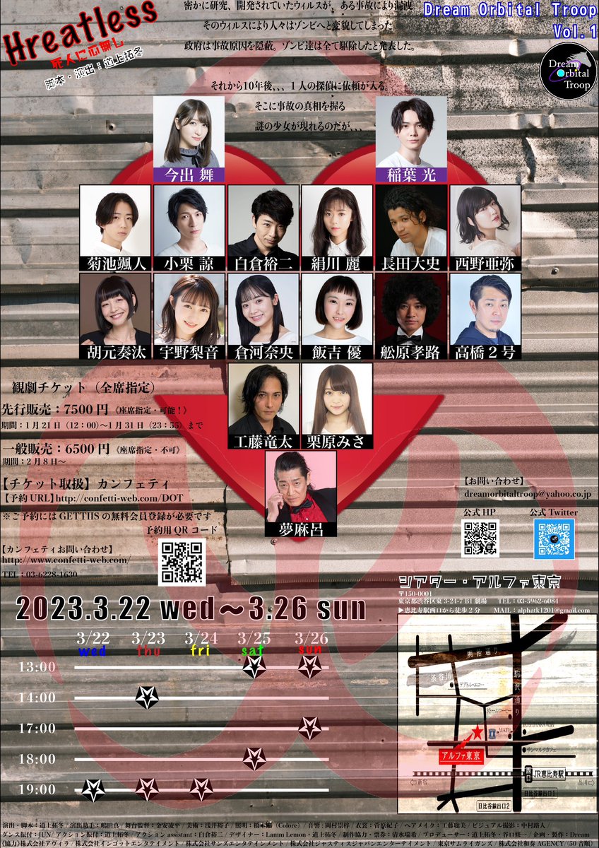 今週のシアター・アルファ東京公演 https://t.co/EzWs0Yn4Ex 合同会社Dream Orbital Troop『Heartless〜死人に心無し〜』 【脚本・演出】:道上拓冬 3/22(水)19:00 3/23… https://t.co/jiElWhklPH