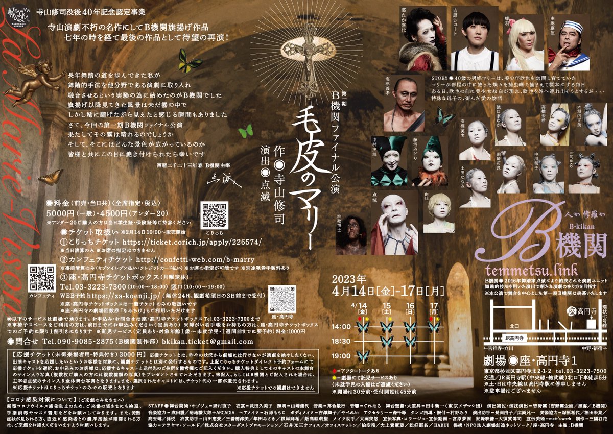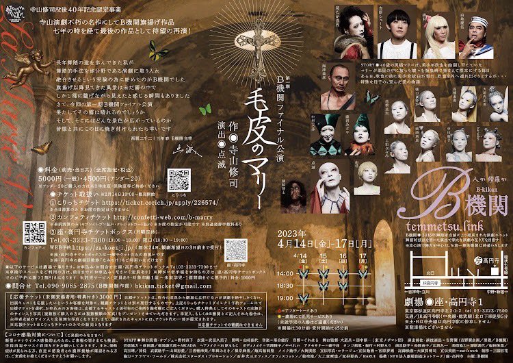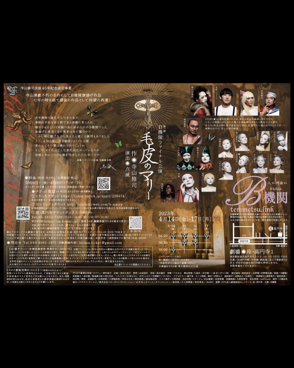 待ちに待った瞬間が今、開かれます!! 第一期 B機関ファイナル公演 『毛皮のマリー』 作◉寺山修司 演出◉点滅 写真◉宮原夢画 衣装◉武田久美子 ヘアメイク◉石原ももこ ボディメイク◉吉澤舞子・やべれい 由佳扱い… https://t.co/SVGQ4s7J7j