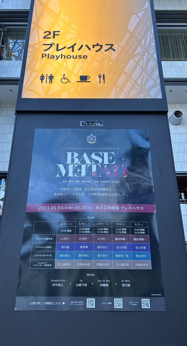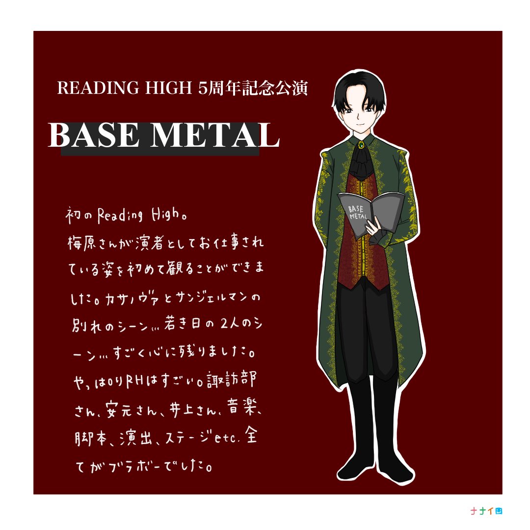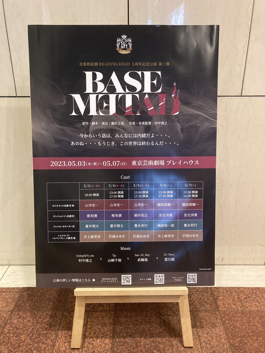 音楽朗読劇READING HIGH「BASE METAL」午後の部観劇してきました。最高でした!大阪公演もいったのだけど、キャストさんが少し違ったりでまた新鮮な感じで面白かったです。いいもの観た。GW明け1週間くらいは仕事頑張れそ… https://t.co/AhtwkSNQGk