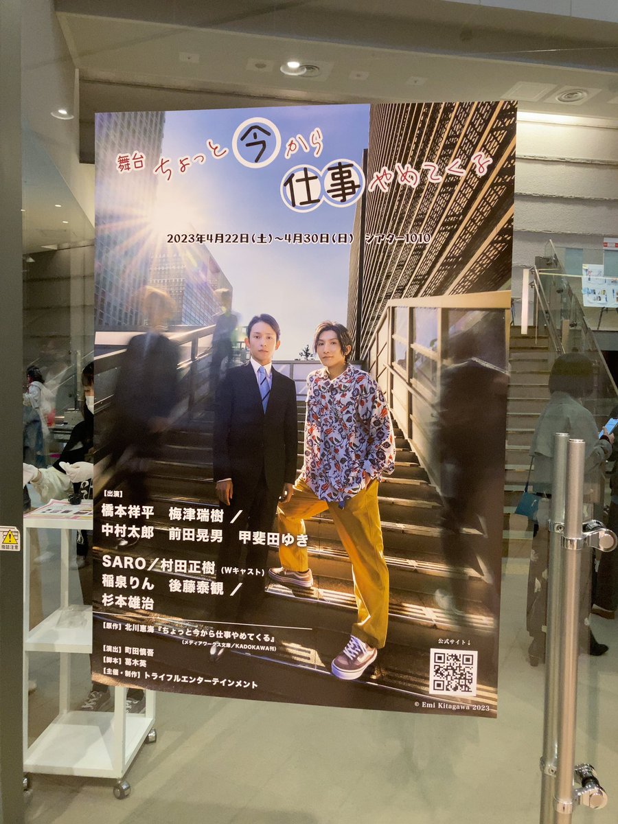 舞台「ちょっと今から仕事やめてくる」、主演の橋本祥平さん梅津瑞樹さんはじめ出演者の皆様およびスタッフの皆様お疲れ様でした! 何もかも放り出したくなるときがあっても、誰かに手を伸ばせる誰かになれた青山と山本の今後が幸せでありますよう… https://t.co/NdX99IuISD