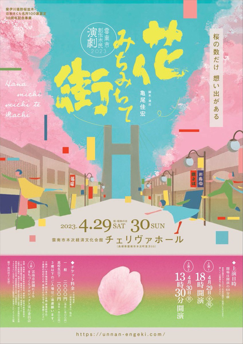 雲南市創作市民演劇2023『花みちみちて街』 脚本・演出:亀尾佳宏 【日時】 2023年4月 29日(土祝)18:00開演/30日(日)13:30開演 【前売料金(税込)】 一般2,000円/高校生以下1,000円 公演詳細… https://t.co/g4e8HKnNLs