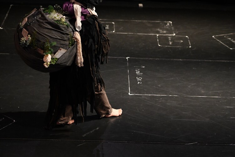 OrganWorks「漂幻する駝鳥」 登場人物はコロス、老婆、青年、シスター、ドアマン。 老婆は大きな荷物を抱えて彷徨い、青年は追われるように、または避けるように彷徨い歩く。 ゆっくり満たしていく老婆と早いペースで渇きと充足の循環を繰り返す青年。