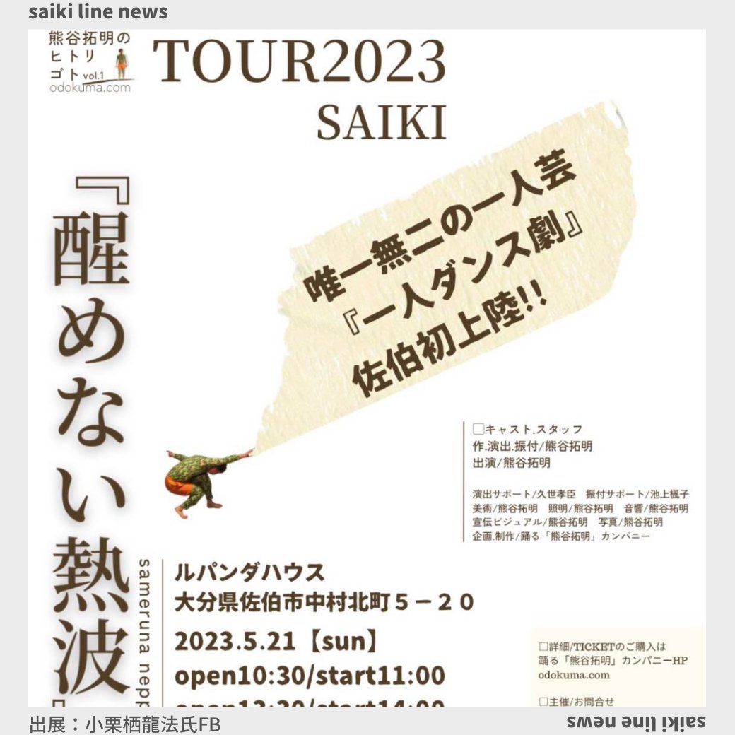 本日のさいきラインニュース 5月21日(晴) ■【本日開催】熊谷 拓明氏『醒めない熱波』 https://t.co/Z8lDpFLfqW https://t.co/Vxq5z09qhu #佐伯市 #さいき