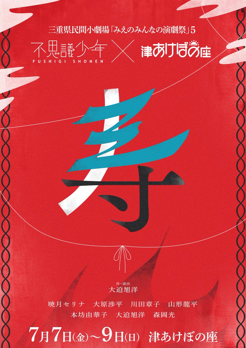 不思議少年×津あけぼの座「寿」 開催日時 7月7日(金)19時開演 7月8日(土)14時開演 7月9日(日)11時開演 (受付開始・開場は開演の30分前から) ※全ステージアフタートーク開催! https://t.co/pSsFVyNThx