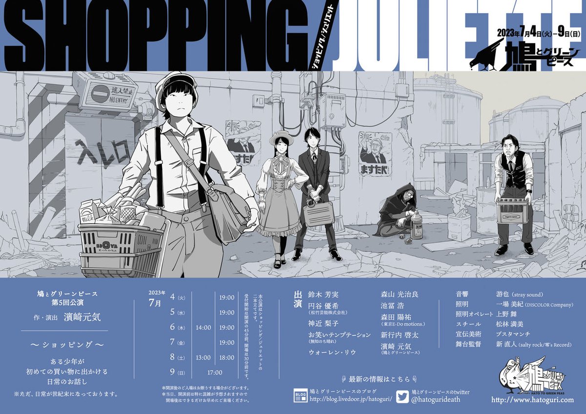 鳩とグリーンピース 「ショッピング/ジュリエット」 7月になりましたねぇ!現時点で4日の公演が中止となっておりますが、5日からはどうにかという気持ちです! 舞台だからこそ、があります。真面目に全力でくだらなくて最高です。ぜひ。… https://t.co/dTuXNqDyL7