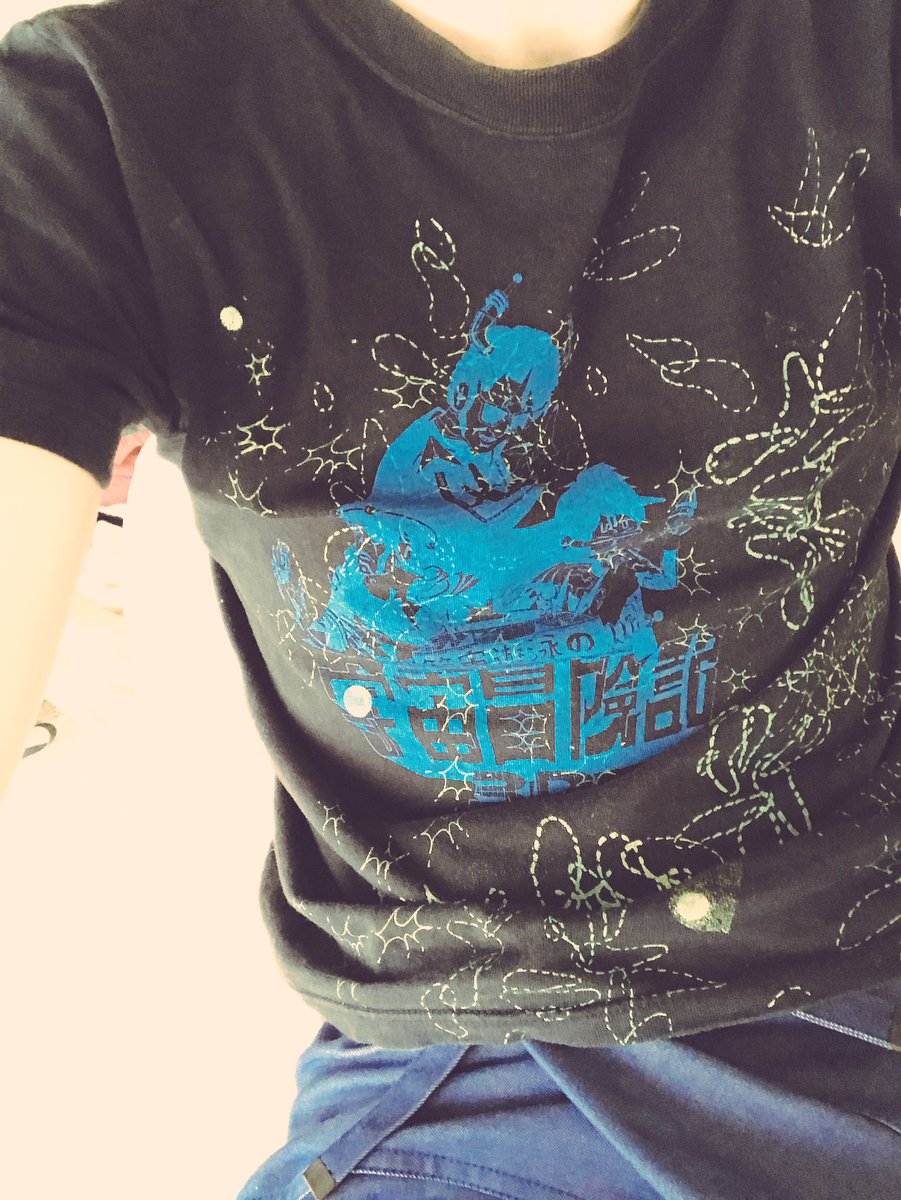 35. 今日は範宙遊泳の宇宙冒険記3DのTシャツを着ていました。 3Dという芝居もあったんですよ。 ふふ。 https://t.co/gfMhDQN65p