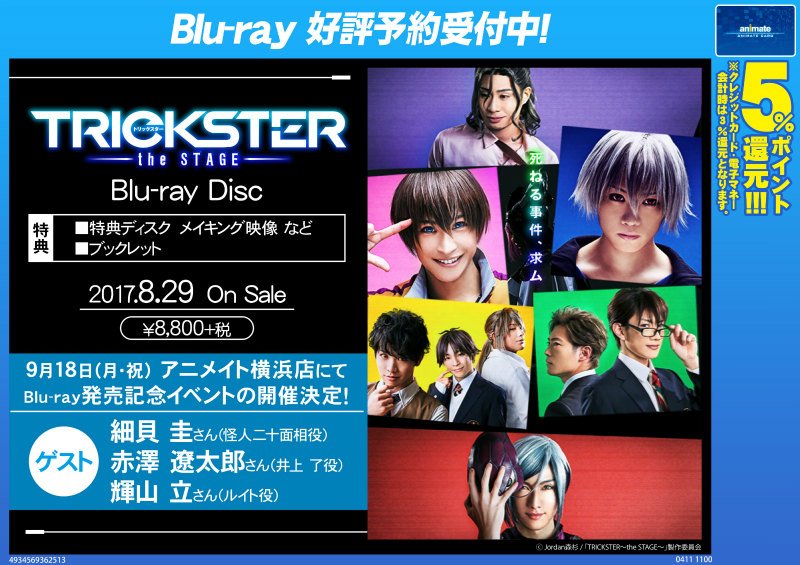 【映像予約情報】『 舞台「TRICKSTER~the STAGE~」』8月29日発売!!! 絶賛ご予約受付中です!!! ご予約(内金全額)にてイベント応募券配布中です!!! 皆様のご予約お待ちしておりますー!!! https://t.co/dQlF0BoRsC