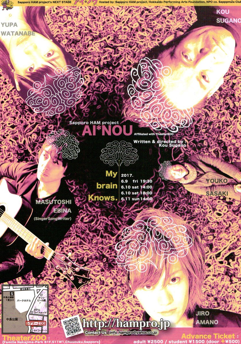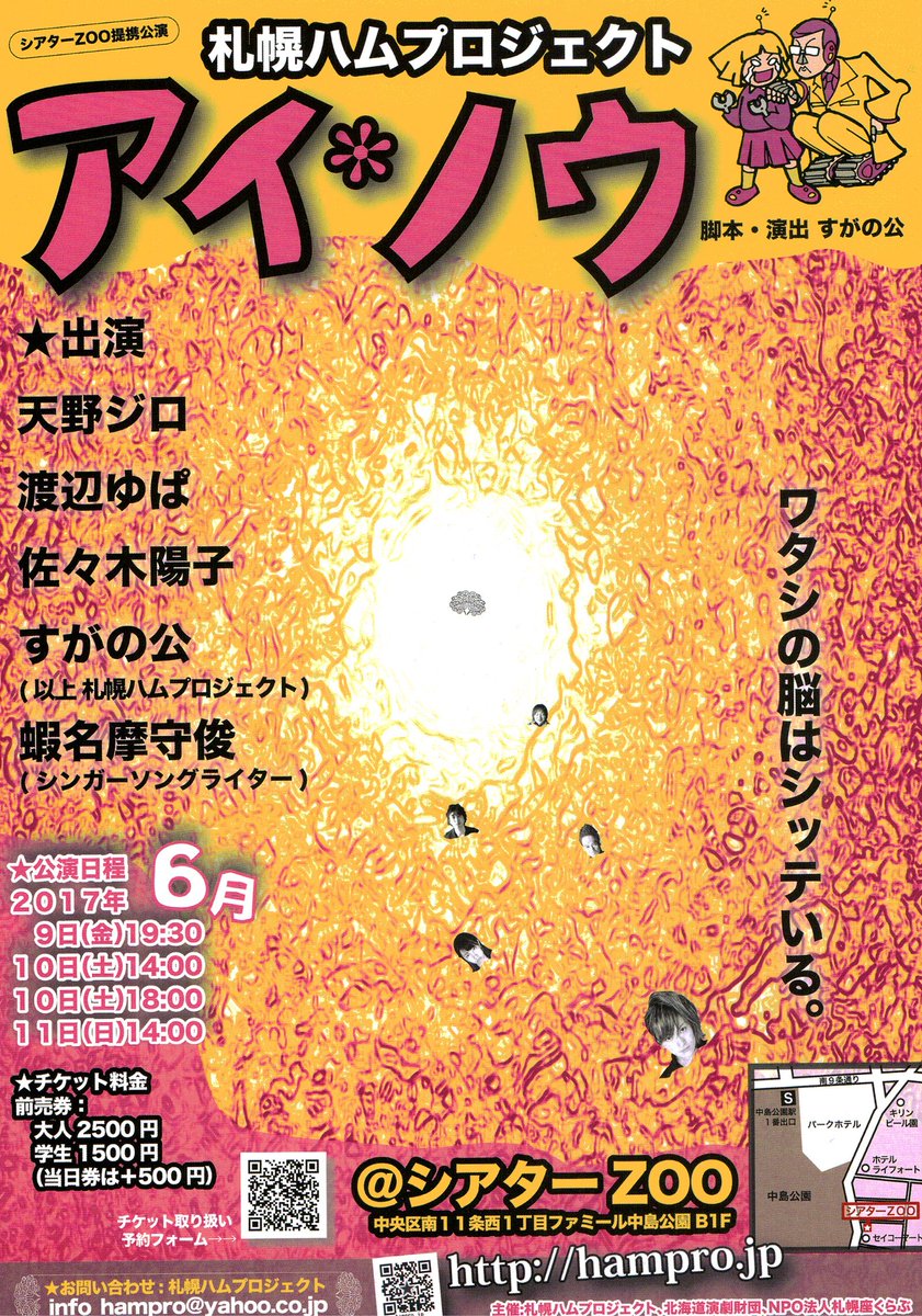 札幌ハムプロジェクト新作公演 【アイノウ】 <札幌ハムプロジェクト> 札幌ハムプロジェクトはすがの公がプロデューサーを務めるの演劇企画運営団体です。
