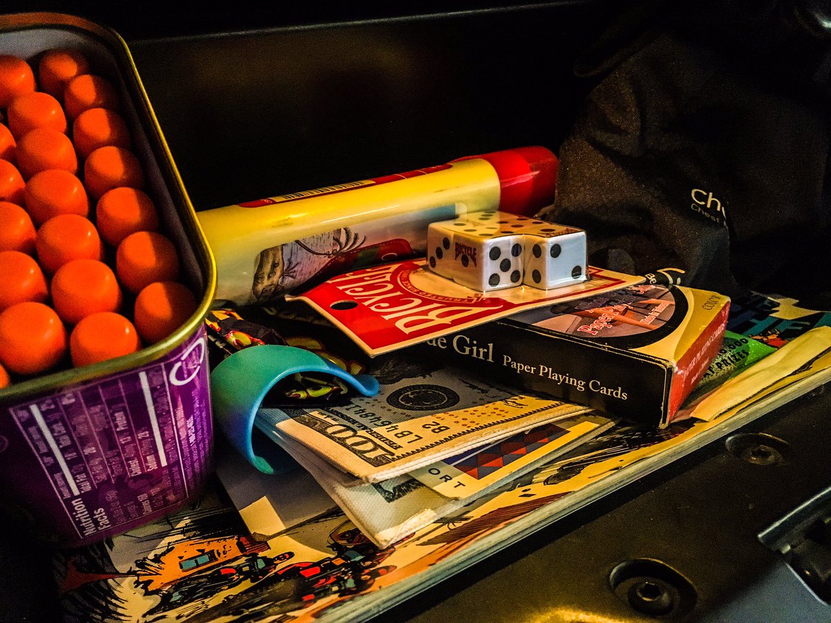 僕のエクリのグローブボックス いつ敵が襲ってくるかわからない地区に住んでるので銃弾。 いつ賭けが始まるか分からないのでダイス。 いつ好きな女の子が乗るか分からないのでデオドラント。 いつ男が乗るか分からないのでエロトランプ。 https://t.co/lfvzJpoZ5i
