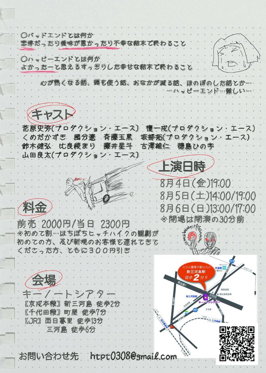 8月第一弾は はちぽちヒッチハイク第6回公演 『バッドエンド描きのハッピーエンド講座』 8/4(金)〜8/6(日) https://t.co/qZzDPkVAms 最寄駅 京成本線:新三河島2分(日暮里駅で京成線に乗り換え一駅) https://t.co/WxsAgZyQwK