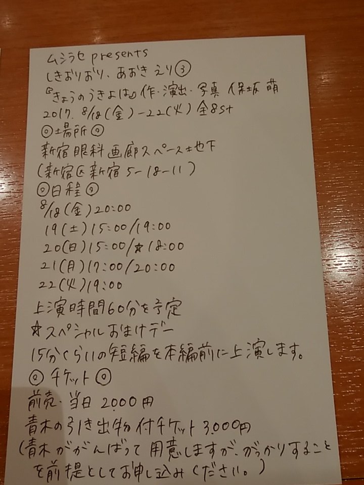 通常、演劇の公演ってタイトルを先に決めるわけですよ、や、すげえ脚本...