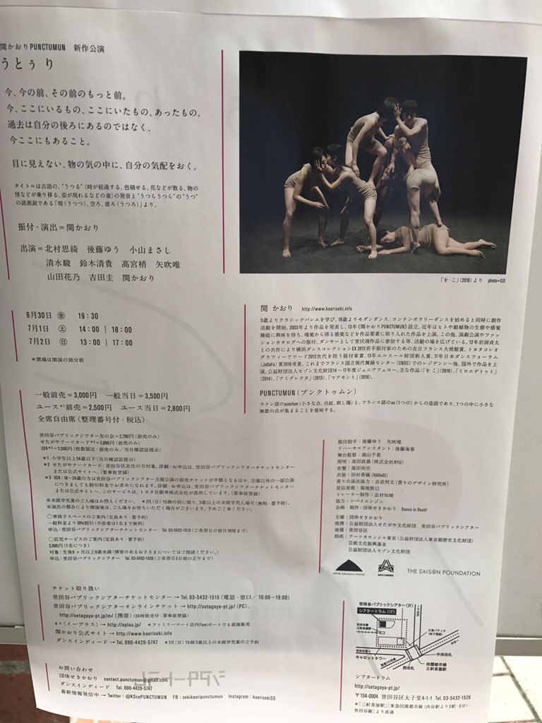 観劇するため東京へ。最近はちょっと体調優れず、観劇は控えめに、上京しても打ち合わせだけにしていたのですが、やはり観ないと始まらない仕事、ぼちぼち気合い入れて頑張りたい。今日は谷桃子バレエ団公演「コンテンポラリーダンストリプルビル」からの関かおりPUNCTUMUN公演「うとうり」。