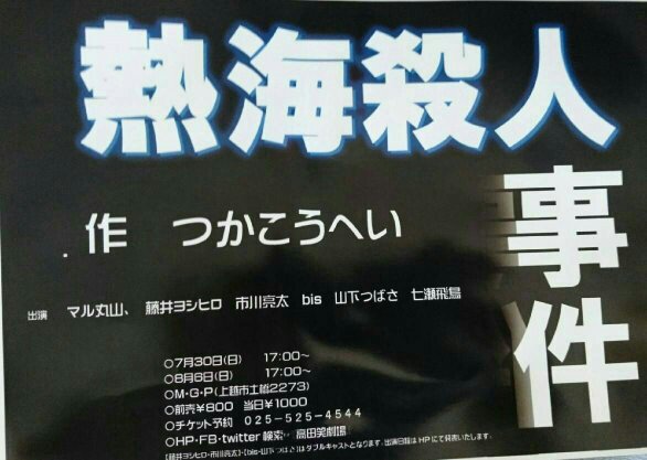 明日、もみぢが見るためだけの番組用メモ。 7/22・23 舞衆一ノ太刀 7/22・23 劇団吟仕込 7/28~30 Y2工房 7/29 デフパペットシアターひとみ(吉田) 7/30・8/6 高田笑劇場「熱海殺人事件」 8/5~2… https://t.co/sfvGjcoXBv