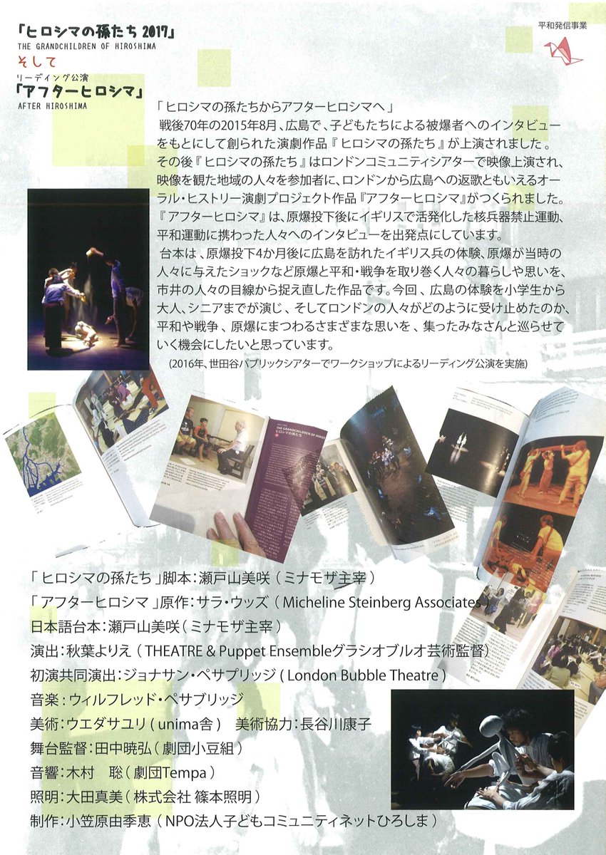 49. 平和発信事業『ヒロシマの孫たち2017…そしてアフターヒロシマへ』(公益財団法人 広島市文化財団)平和発信事業『ヒロシマの孫たち201... https://t.co/ptxadXPfQ0