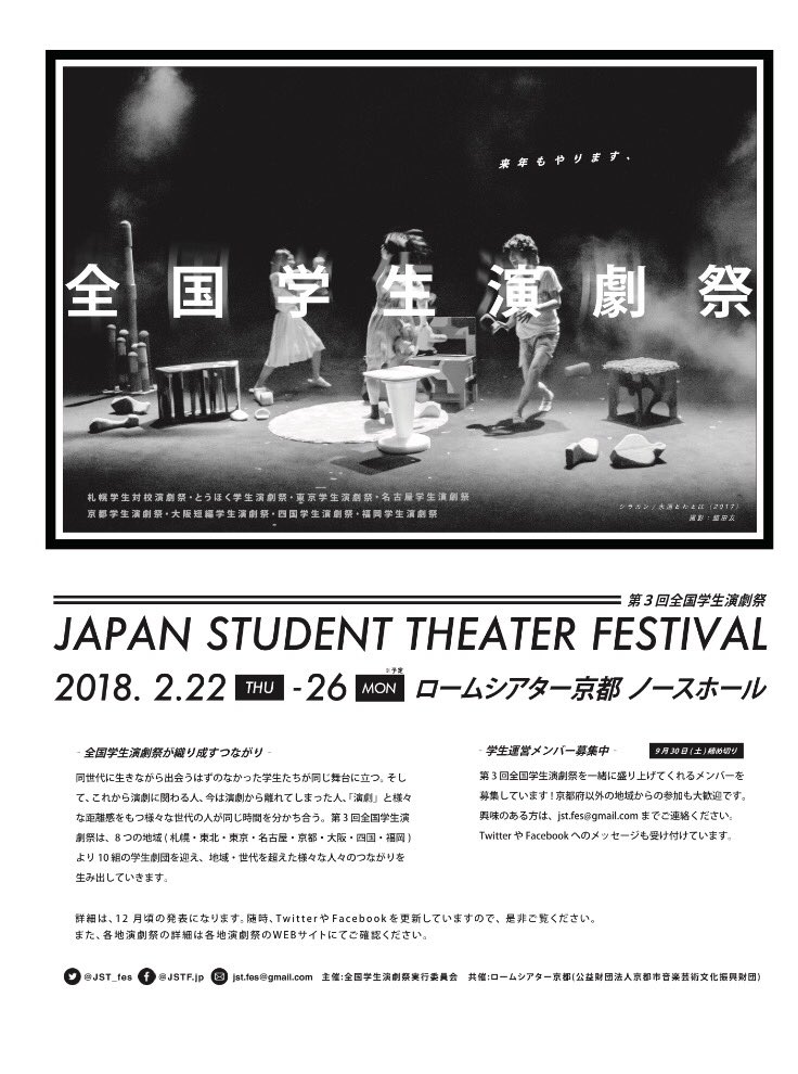 33. 東京学生演劇祭、代表はフライハイトプロジェクトさん(審査員大賞)と喜劇のヒロインさん(実行委員会大賞)とのこと! 第3回全国学生演劇祭・ロームシアター京都にて待ってます!!