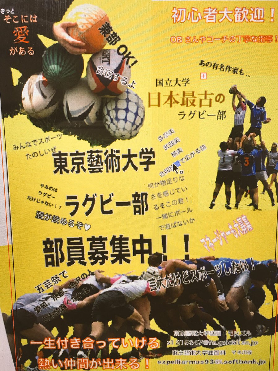 【部員募集中!】【マネージャー歓迎】 日本最古のラグビー部こと東京藝術大学ラグビー部です! 1929年からつづく熱い仲間はいまここに 随時部員募集中ʕ·ᴥ·ʔ定期的に活動の様子をつぶやくよ♡ https://t.co/tmfBrkFUmO #twirobo