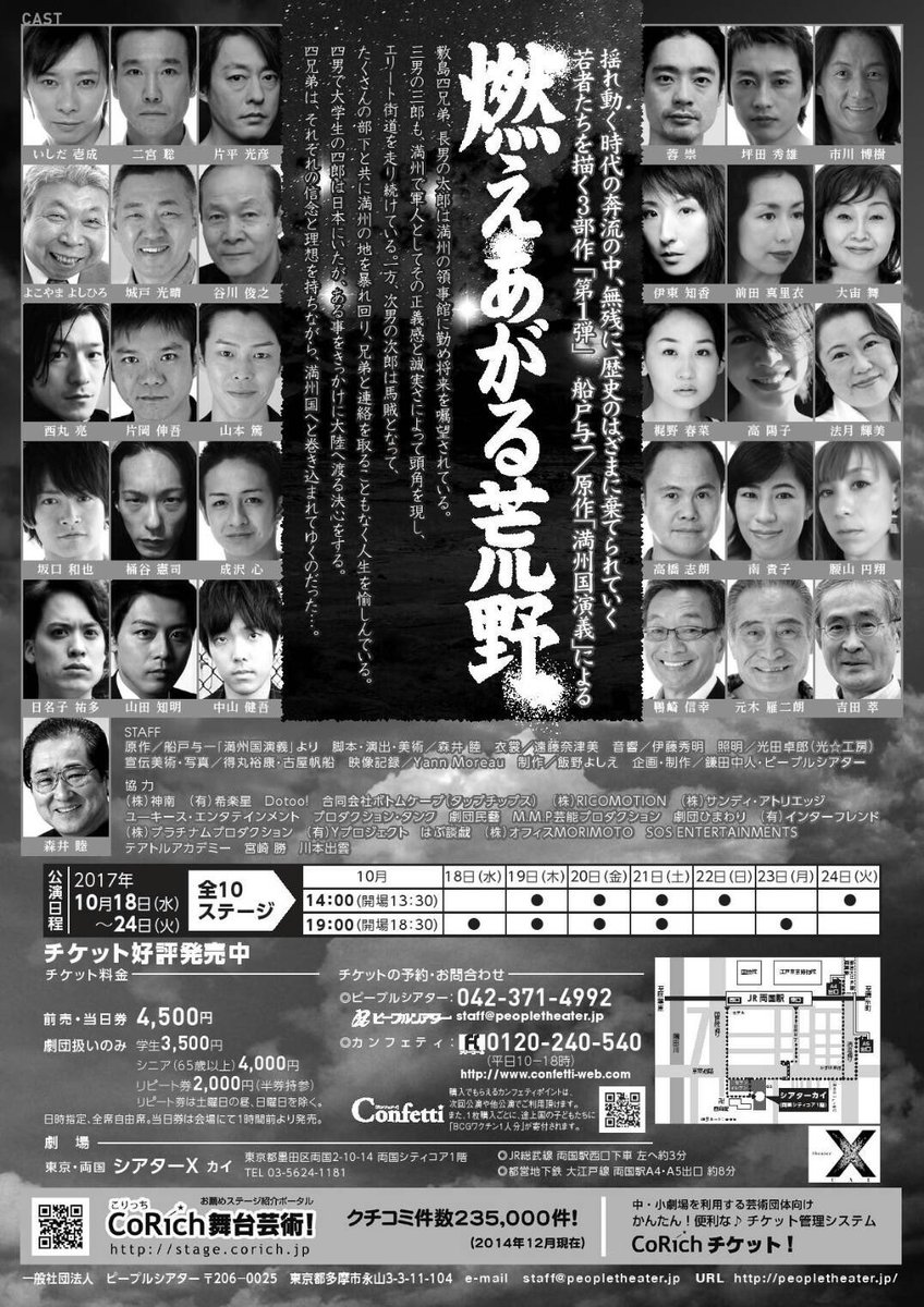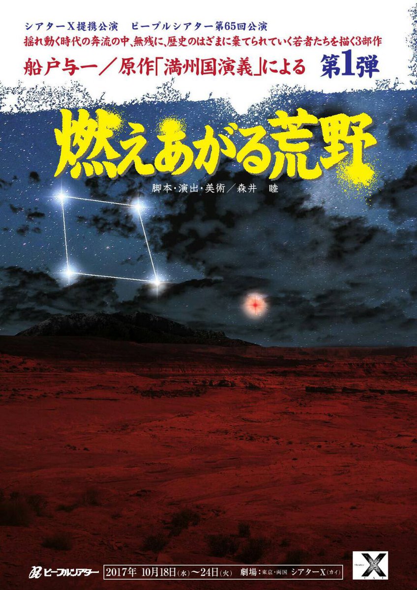 【情報解禁】チケットURL改訂版 ピープルシアター 『燃えあがる荒野』 船戸与一/原作「満州国演義」 日程:10/18〜24 劇場:シアターX 3部作の第1部です! 激動の時代を生きた壮大な人間ドラマです✨ ご予約→https://t.co/uYYOveFq9v