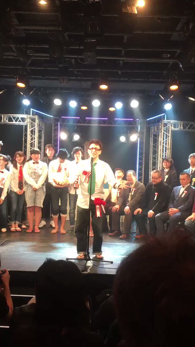 《11月19日の乱》② 歓喜の時間が続き 御報告遅れましたが 『たとえ話サークル殺人事件』 いただきました! 主宰のこの スピーチ通り、 今後本公演で 僕とじぇーが 主役やる事は… https://t.co/XDzEdyyWNU #コメフェス #バージョン5 #グランプリ