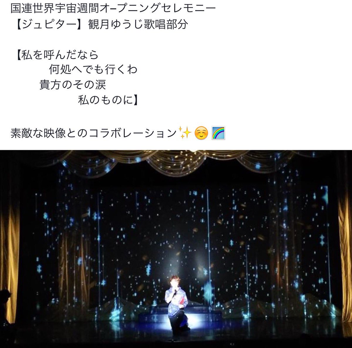 10月4日〜10日は国連世界宇宙週間💫! ・ 今日はそのオープニングとして開演されるミュージカル「ロケット王子の星ものがたり」を仕事終わりに観に来ています💫 ただ今、休憩中…🍵 ・ 民間宇宙飛行… https://t.co/aDaWqWEQrN