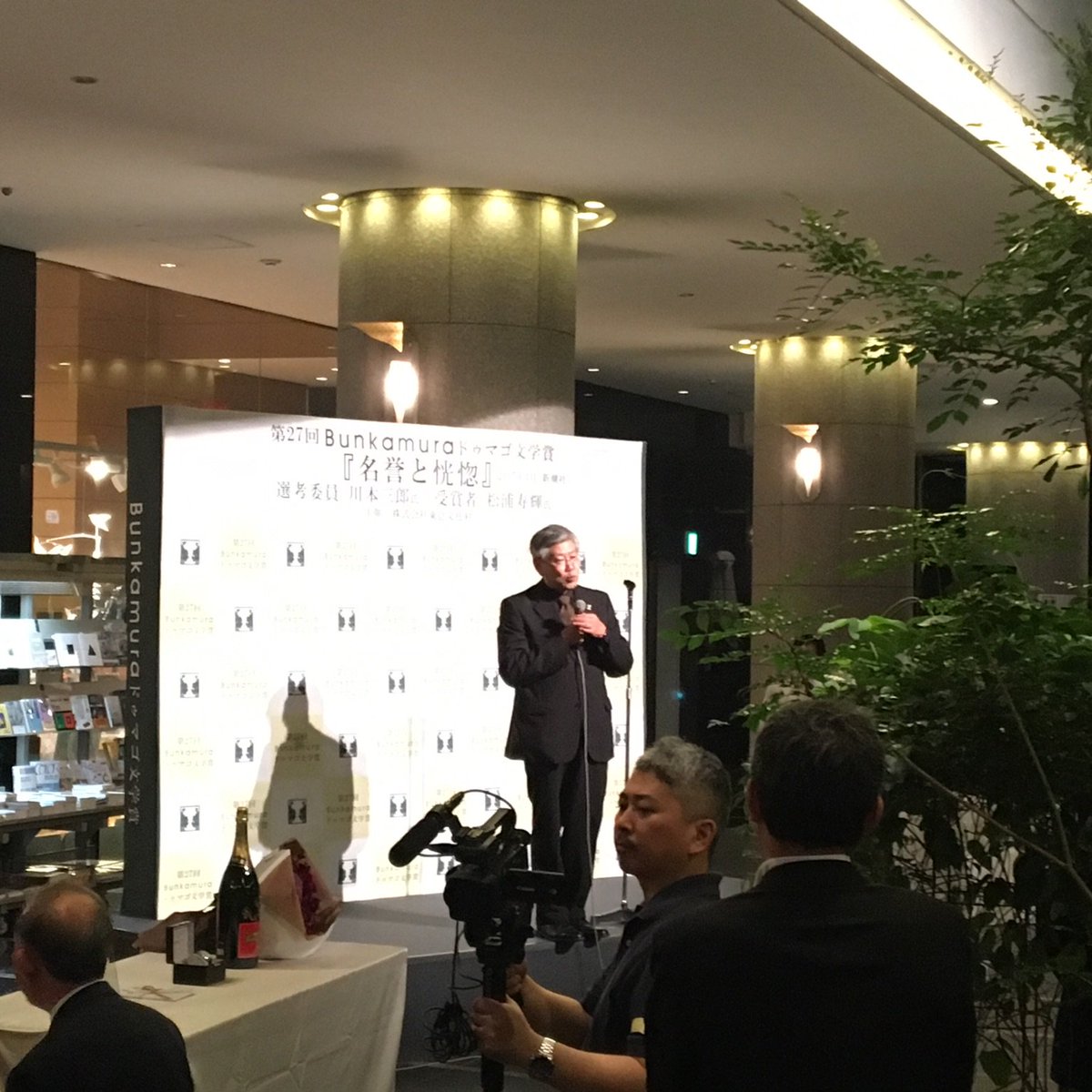 今年のBunkamuraドゥマゴ文学賞は松浦寿輝さんの『名誉と恍惚』。選者は川本三郎氏。マイクを両手で握りしめられるところが20年前と一緒だった。おめでとうございます。来年の選者は大竹昭子さんなので楽しみ。 https://t.co/4ePC6IYlIi