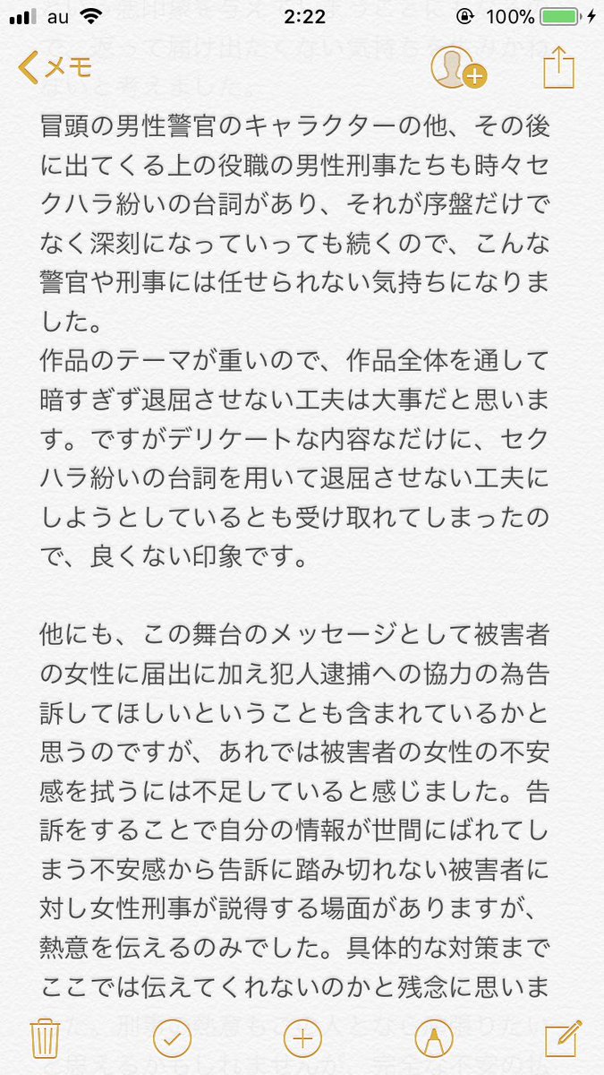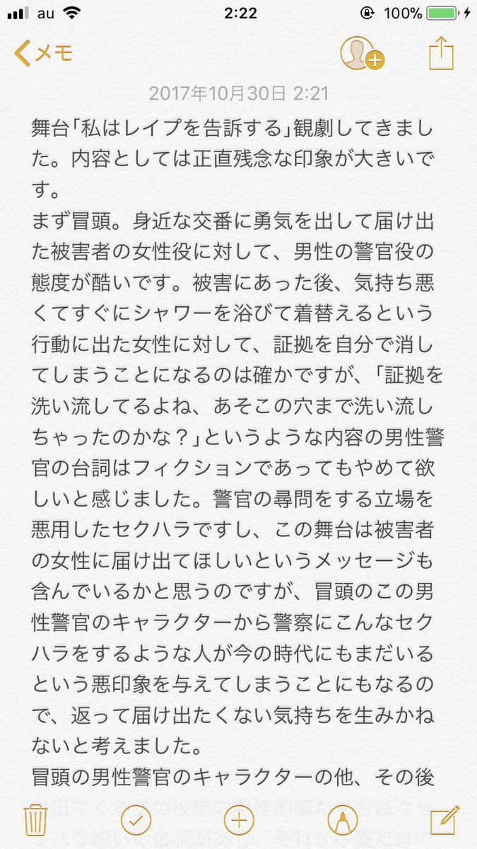 舞台「私はレイプを告訴する」日付変わっちゃったので昨日ですが、千秋楽に観に行ってきました(✿。・v・。) デリケートな内容だしちょっと思う所があるのですが、感想長いけど貼りますー https://t.co/4NZXvsj38Z