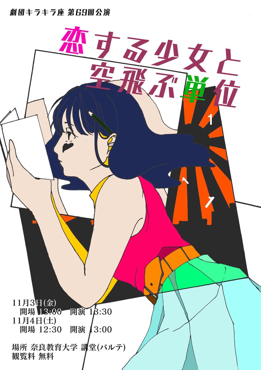 【恋愛ってのは、人類最古の】 劇団キラキラ座第69回公演 「恋する少女と空飛ぶ単位」 脚本:せのま 日時:11/3(金)13:00開場 13:30開演 11/4(土)12:30開場 13:00開演 場所:奈良… https://t.co/b7Mr6enLNi