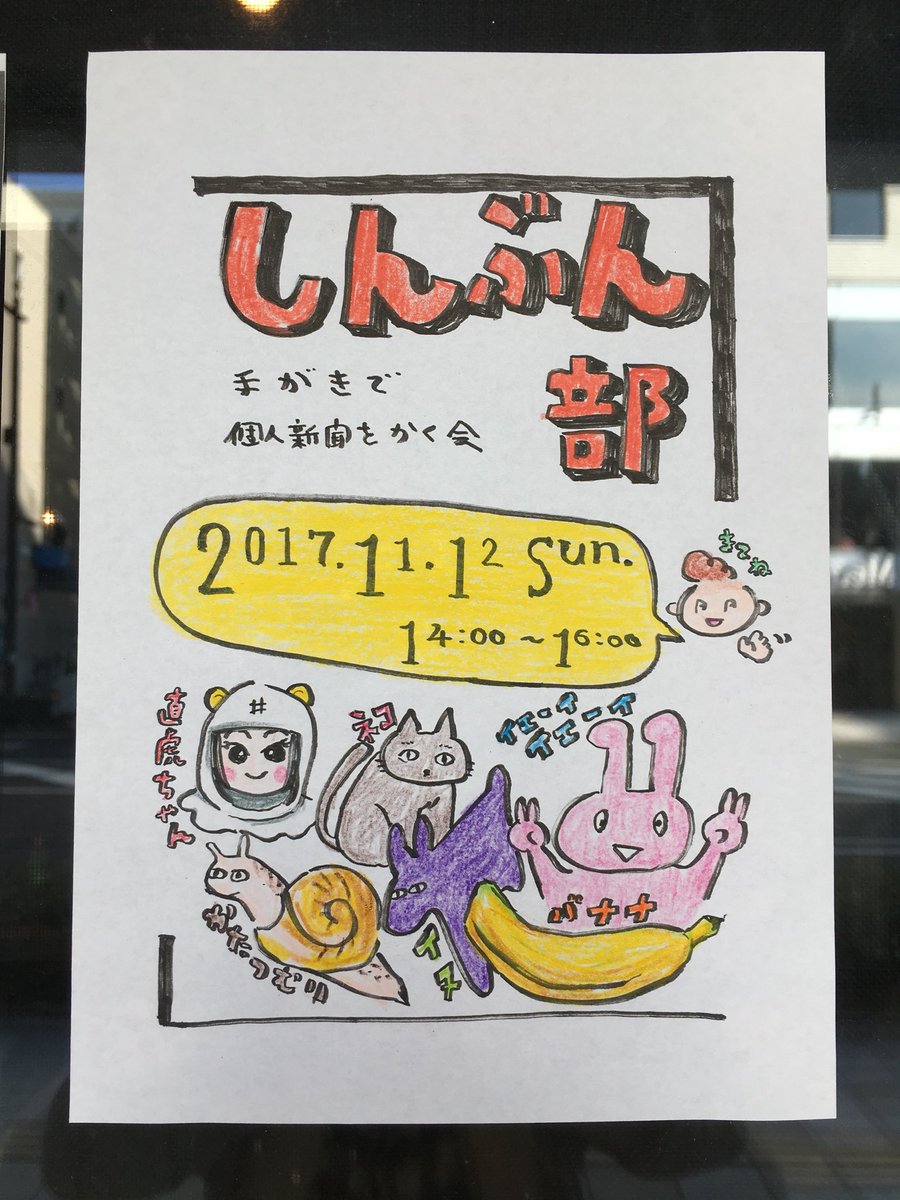 今週日曜日はコーヒーの講座もあるけど、しんぶん部もあるよ。7階ではニコリという雑貨市やっていて、8階では絡繰機械'sさんたちが公演しているよ。みんな、万年橋にあそびにきてね。 https://t.co/lurudpa0At