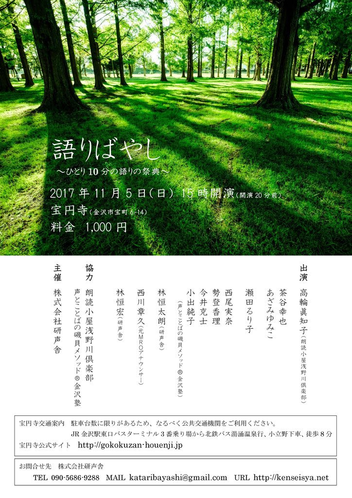 声塾かなざわのメンバーが朗読出演&スタッフとして参加します。