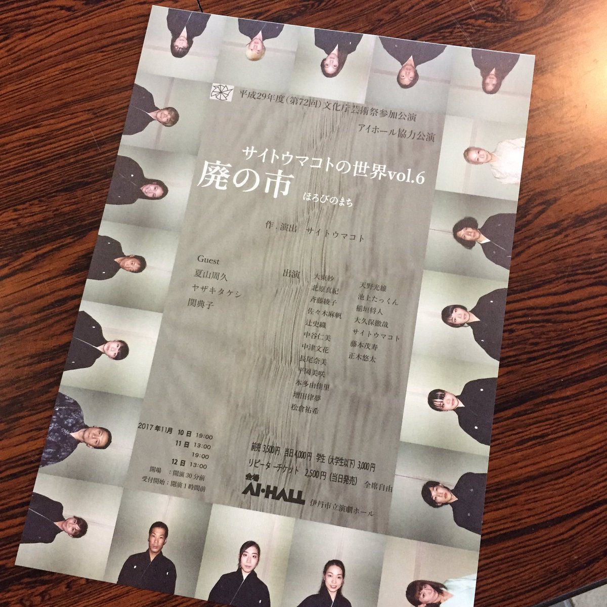 【今週の公演情報】2017/11/10金-2017/11/12日[兵庫県/伊丹]AI・HALL▽サイトウマコトの世界 vol.6「廃の市 ほろびのまち」▽https://t.co/M3EsdeaJsC