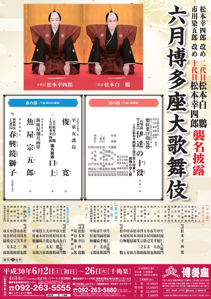 6月博多座把握。 演目と共演者が出てから…とぉ思ってました。行きまっす!