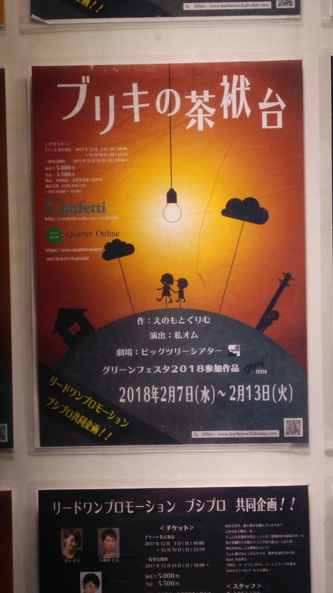 【GREENFESTA2018参加作品】 多くの若手俳優が所属するリードワンプロモーションと、常に魅力的な作品に挑戦し続けるブシプロがタッグを組み、新進気鋭のえのもとぐりむワールドに挑む! 『ブリキの茶袱台』はBIG TREEにて2/7〜2/13まで上演!