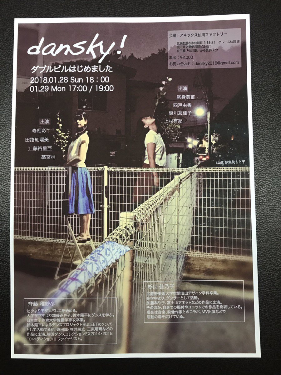 本日は「dansky! ダブルビル」16時〜と19時〜です。仕事終わりにふらっと、不思議なダンスの世界に溺れませんか? @アネックス仙川ファクトリー https://t.co/RfTQehn2FW