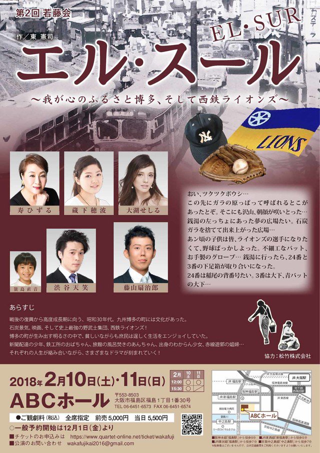 【2018/02/10土 12:00-/15:30-】[大阪府/福島]ABCホール 藤山扇治郎自主公演 第2回若藤会「エル・スール〜我が心のふるさと博多、そして西鉄ライオンズ〜」▽https://t.co/NU9CbFwPpN(-02/11)