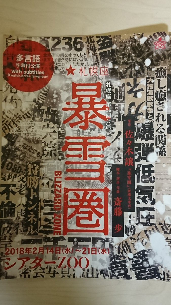 27. 札幌座 「暴雪圏」観てきました。 最初から最後まで釘付けの面白さ。 全公演完売も納得。 もう1度観たかった。 https://t.co/SvGSS8Jyv5