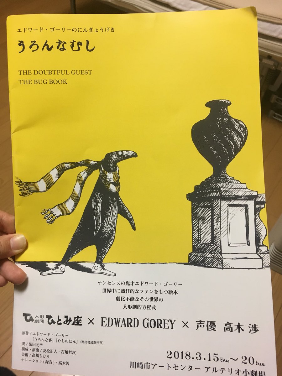 昨日は、川崎市アートセンター アルテリオ小劇場で、エドワード・ゴーリーの人形劇「うろんなむし」を堪能してきました。 初めて観に行った人形劇、そして、まさかのエドワード・ゴーリー! 感激でした! そして、ついつい買ってしまった… https://t.co/kKWUlGLu1C