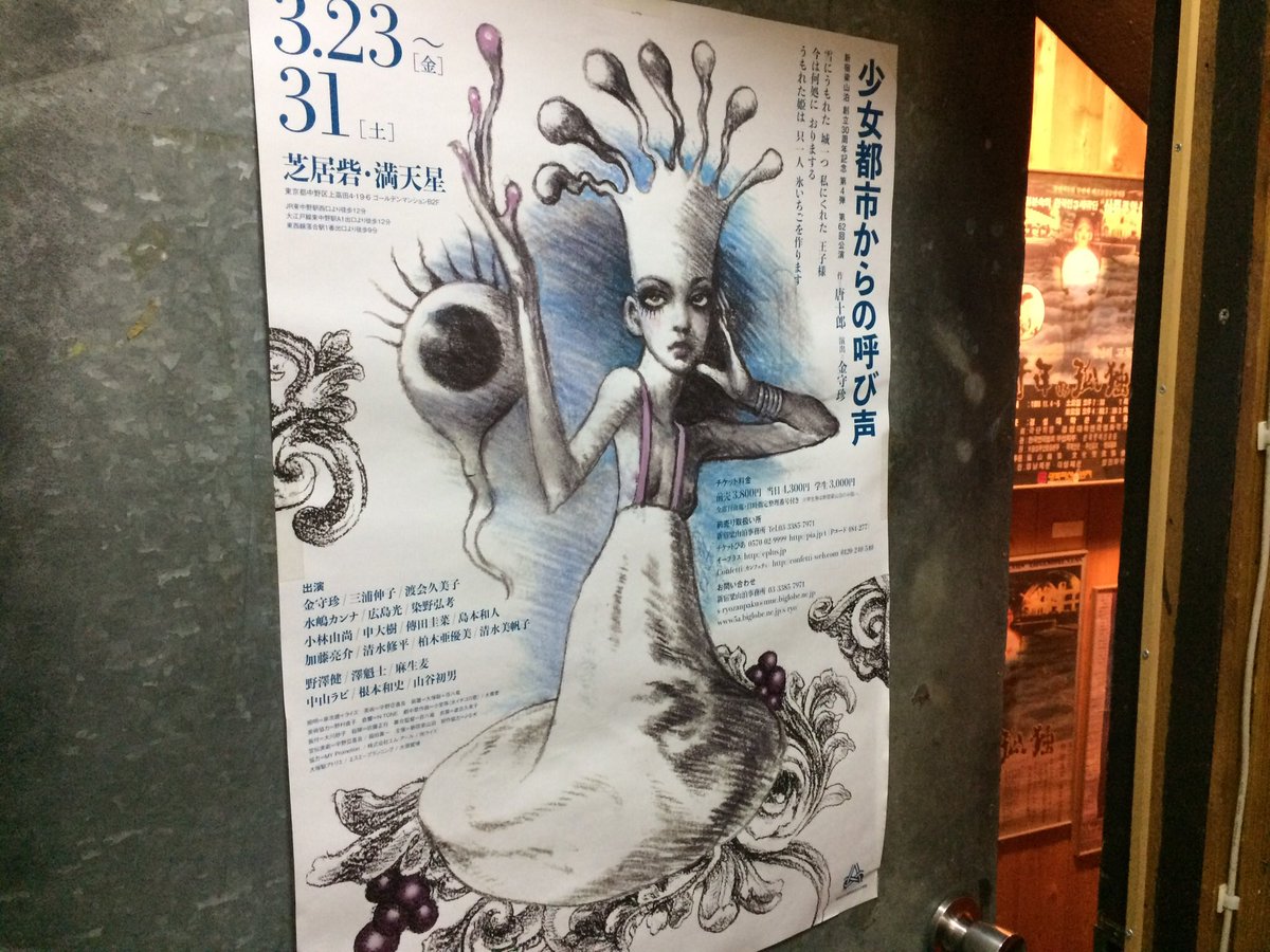 今宵は新宿梁山泊『少女都市からの呼び声』(作:唐十郎)。今月2本目の金守珍さん演出作品。 作品自体もとてもよかったけど中でも特筆すべきは雪子役の清水美帆子さん。出てきた瞬間から目を引くものがあり… https://t.co/Ii0yrcMhH1