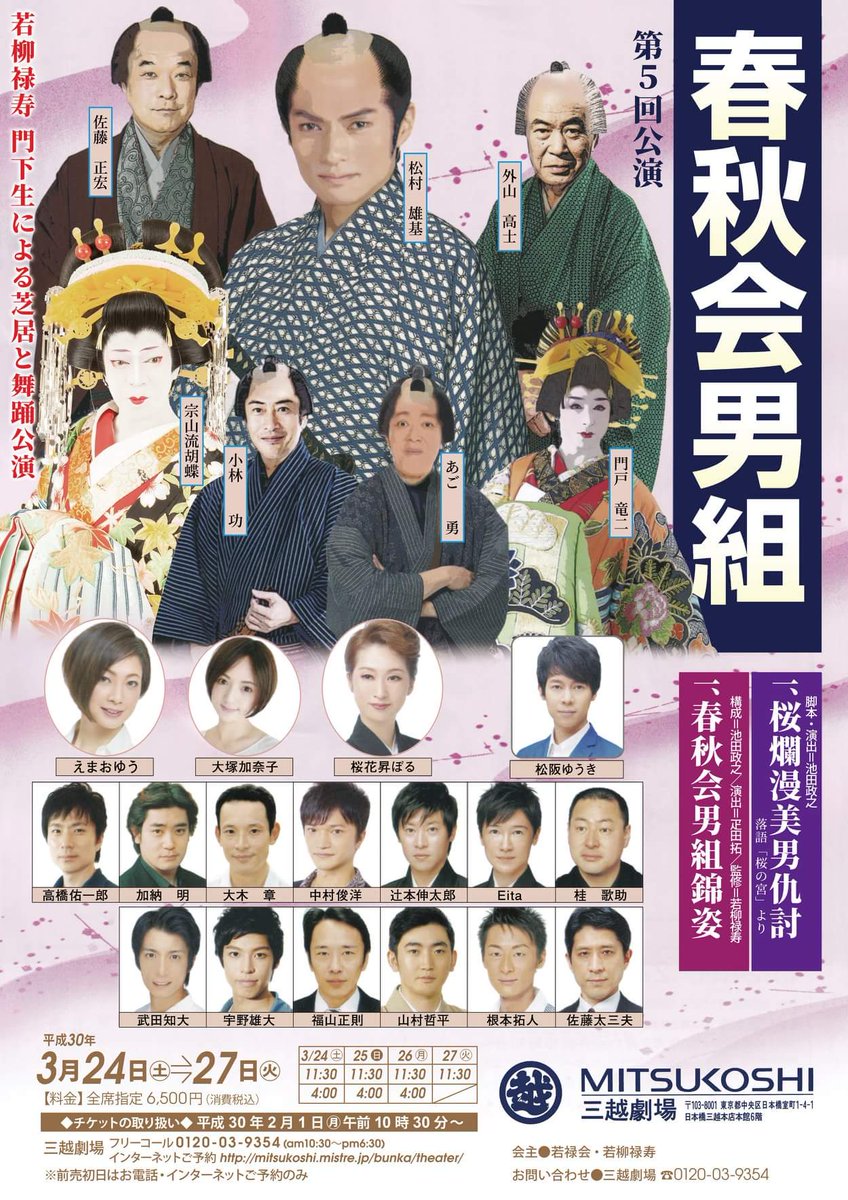 本日21日(水・祝)阿弥陀寺のお彼岸会にて味噌蔵を演じました。次回は24日(土)25日(日)26日(月)11:30と16:00 27日(火)11:30日本橋三越本店本館6Fの三越劇場「春秋会男組」公演にて芝居と踊りを演じます。入場料は6500円(指定席)です。