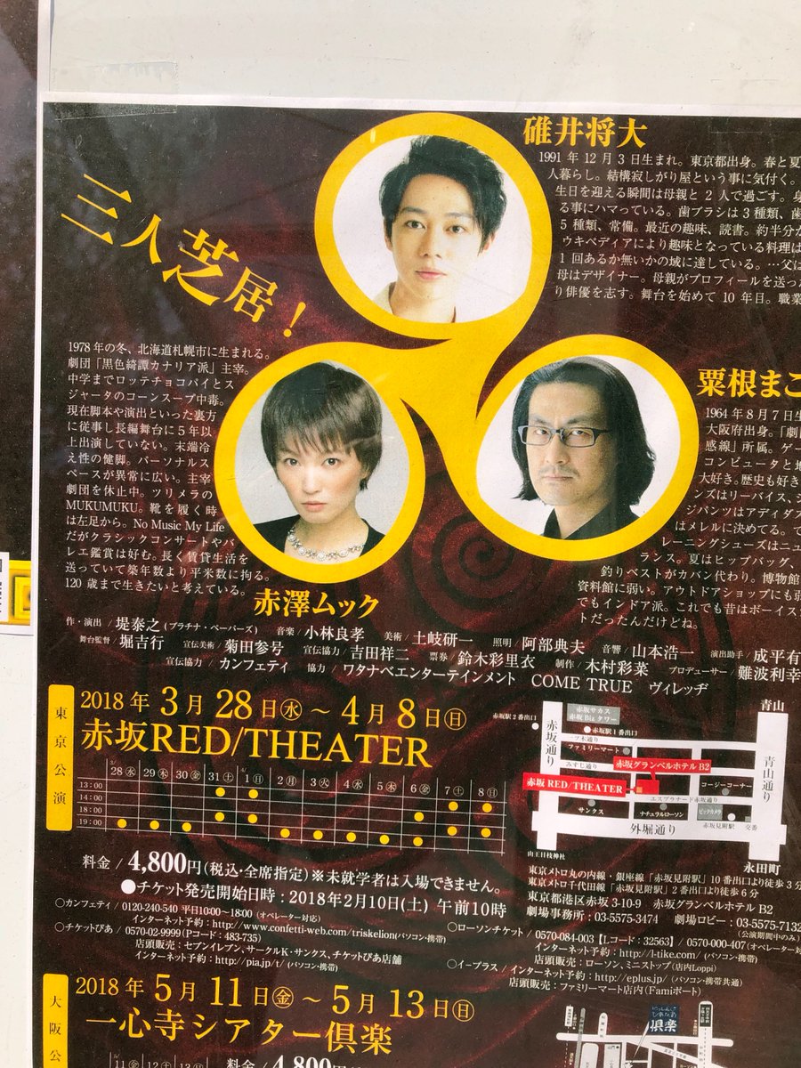 【2018/05/12土 13:00-/18:00-】[大阪府/天王寺]一心寺シアター 倶楽▽サンライズプロモーション東京 「トリスケリオンの靴音」▽https://t.co/Bq3xfdSqJt(-05/13)