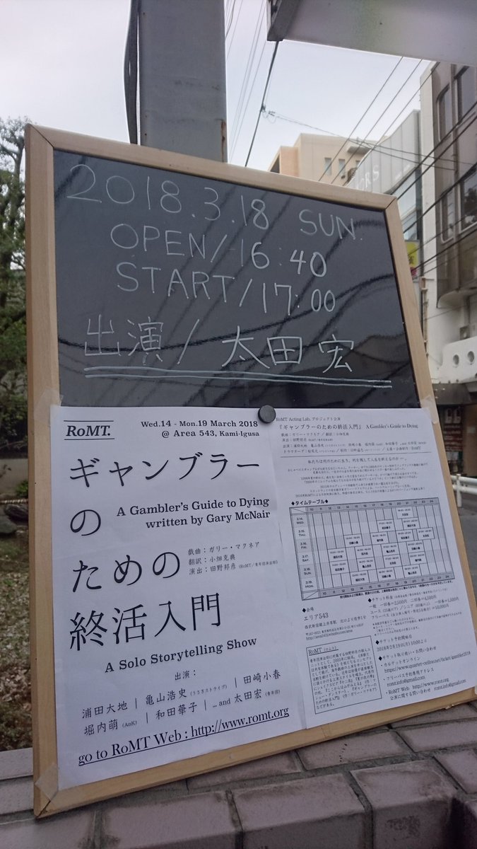 RoMT Acting Lab. 『ギャンブラーのための終活入門』太田宏さんver. 言葉を届ける力と言うのか、我々観客の目の前に言葉を置いてくれると言うのか、もう勝手に自然と聞き入るって感じでした。『愛の終わり』もそうだったので… https://t.co/ASSf70IuRf