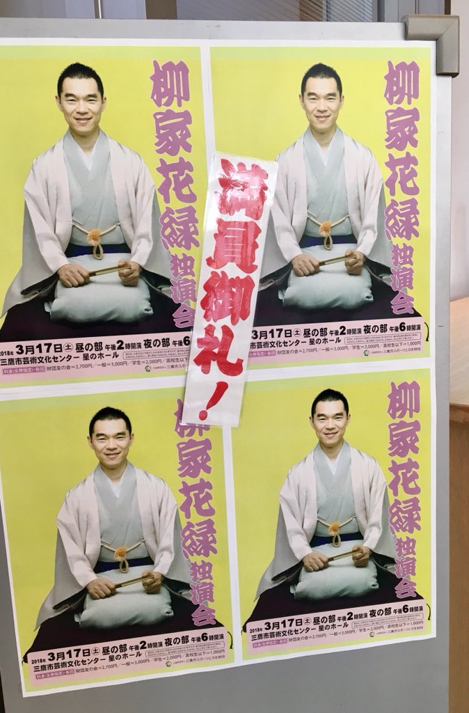 柳家花緑独演会 3月17日(土)昼の部14時開演/夜の部18時開演 三鷹市芸術文化センター <当日券情報> 本公演は、昼の部・夜の部ともに完売しております。当日券は各回開演の1時間前より会場入口にて補助席を販売致しますが、数席の… https://t.co/cMxaXRzsOn
