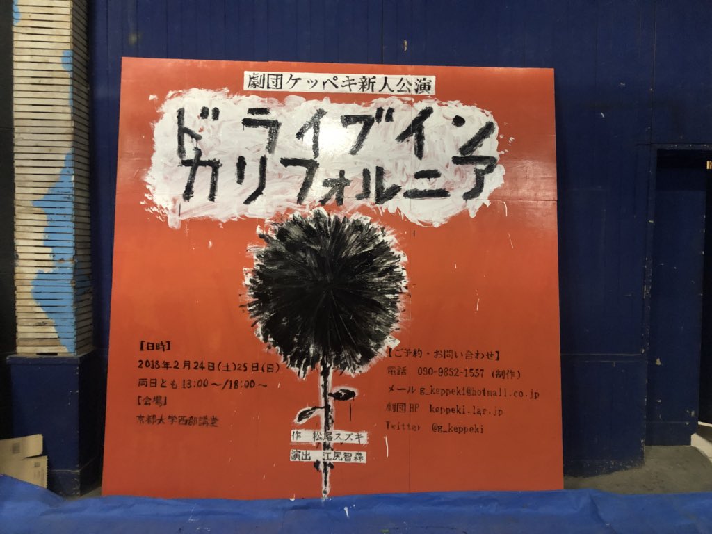 【新人公演は今週末!!】 劇団ケッペキ2017年度新人公演 『ドライブインカリフォルニア』 作:松尾スズキ 演出:江尻智森 ◇日時 2/24(土)・25(日) 両日 13:00〜 / 18:00〜 ◇会場 京都大学… https://t.co/yd9VFUnFz8