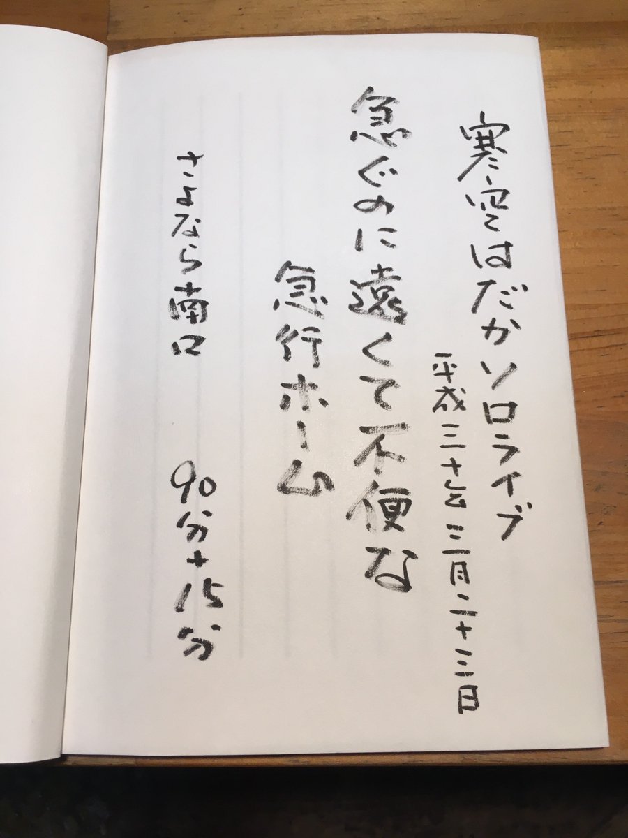 <オフィスねこにゃ>昨夜は「寒空はだかソロライブvol.9〜急ぐのに遠くて不便な急行ホーム〜」のご来場、誠にありがとうございました!さらに不便になりそうな下北沢の駅。色々考えさせられますね。 https://t.co/tg3XLhJ9PL