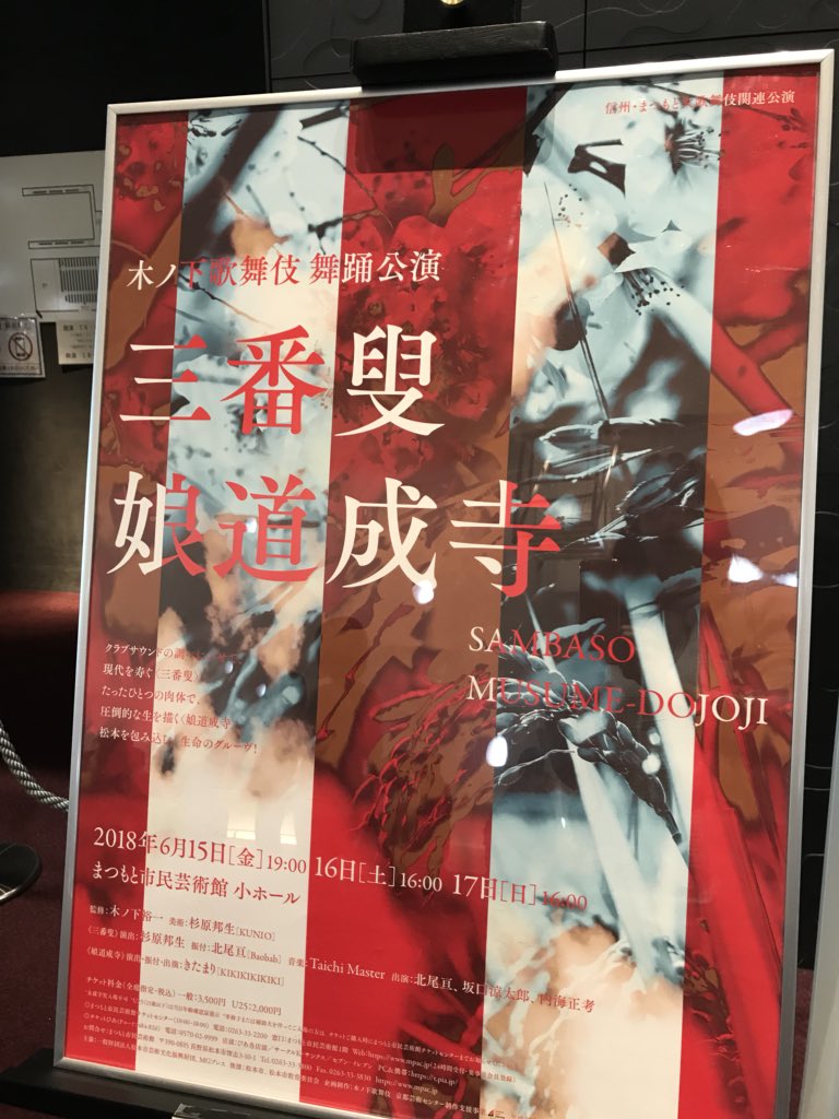 ようやく信州・まつもと大歌舞伎。今日はゆっくりめに松本入りして、木ノ下歌舞伎だけ観劇。 三番叟も娘道成寺も、もの凄い迫力。踊りとはこういうことかという本質を見せつけられたような気がした。 https://t.co/AbZAT3C8SM