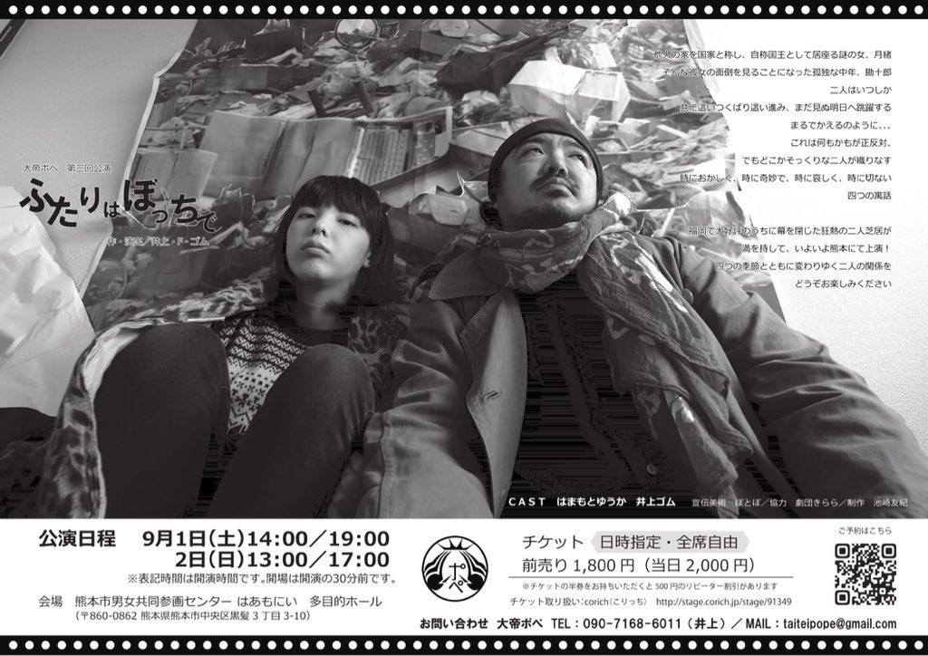 大帝ポペ第三回公演「ふたりはぼっちで」終演しました。 ご来場いただいた皆様、関係者各位本当にありがとうございました!!