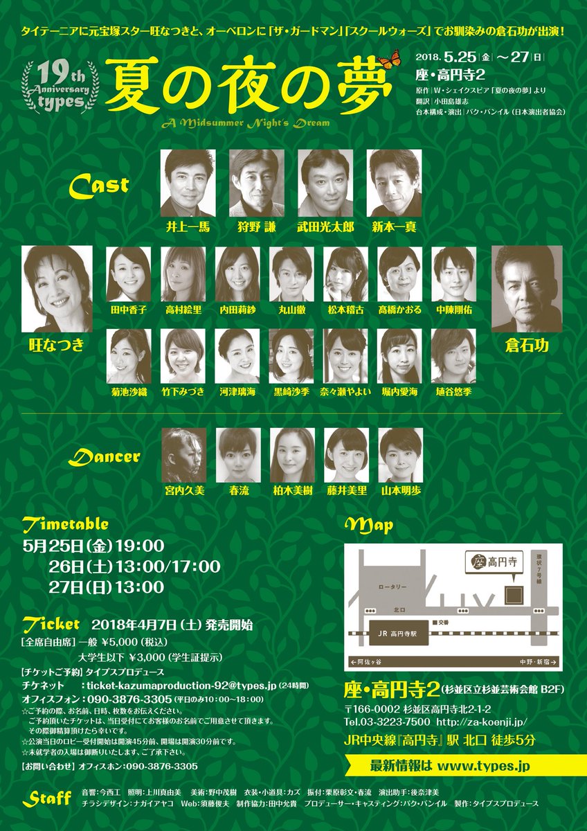13. タイプスプロデュース「夏の夜の夢」旺なつき、倉石功らが出演 https://t.co/896anlRDID https://t.co/tdn5QnPLzp