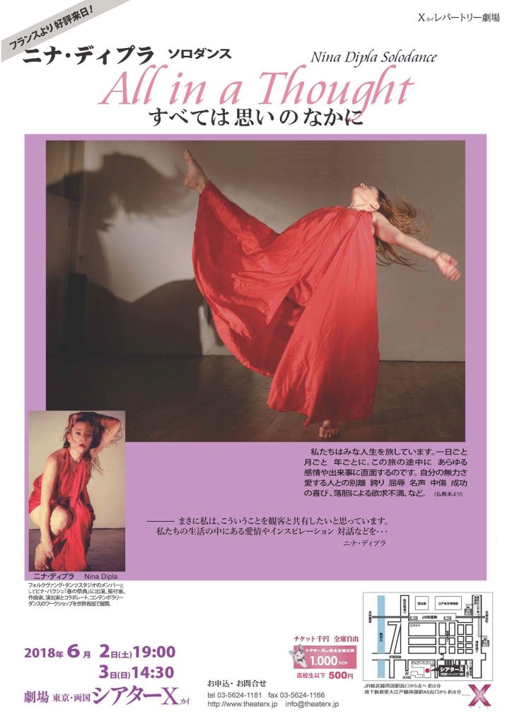 6. ☆次回出演情報☆ ニナ・ディプラ ソロダンス公演 [All in a thought すべては思いのなかに] 2018/06/02(土)19:00〜 06/03(日)14:30〜 シアターΧ国際舞台芸術祭201… https://t.co/ISheSk0QC2