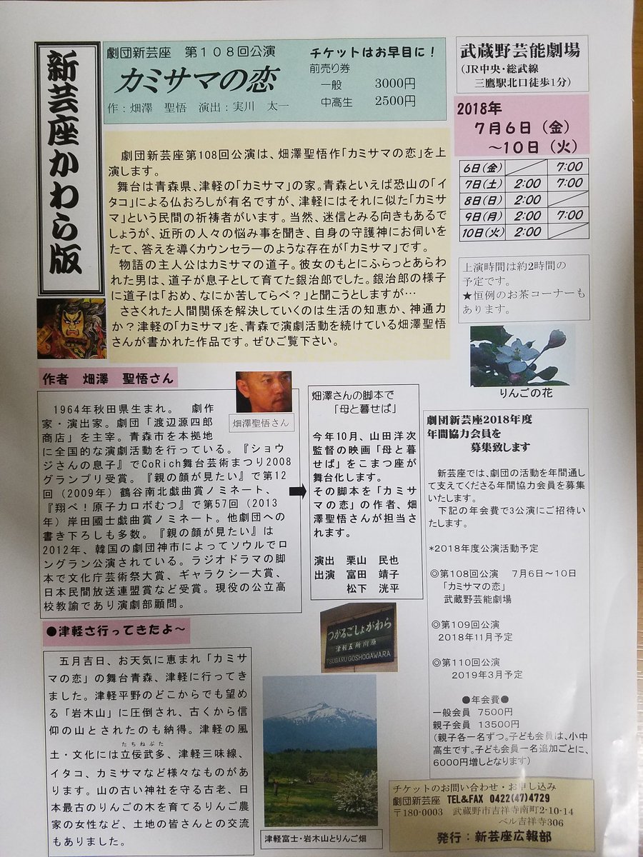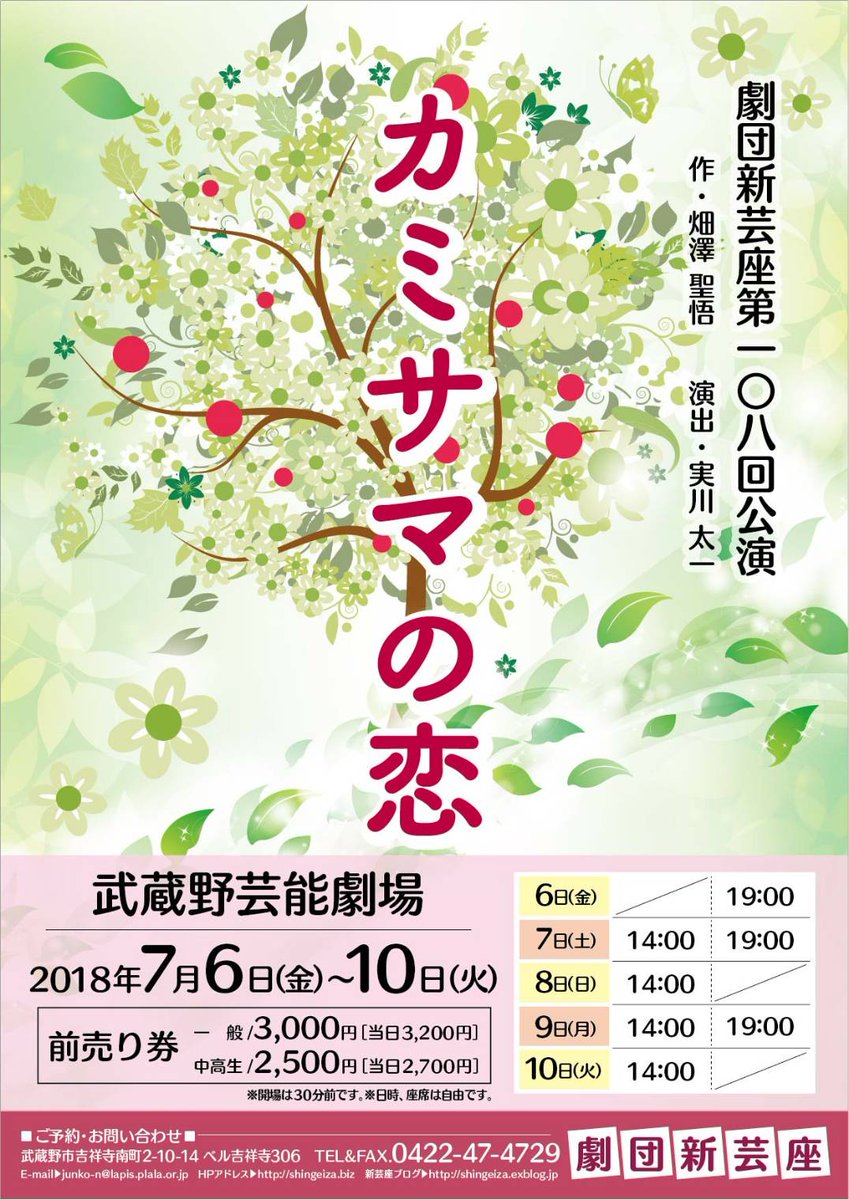 劇団新芸座108回公演「カミサマの恋」 【劇場】 武蔵野芸能劇場 【タイムスケジュール】 7/6(金)19時 7(土)14時/19時 8(日)14時 9 (月)14時/19時 10(火)14時 チケットのご予約、はDMでお願いします!