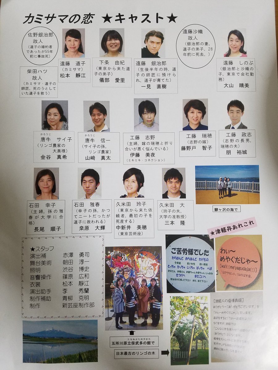 事後報告になりますが新芸座第108回公演『カミサマの恋』に「石田雅春」役として出演させていただきました。心温まる“やさしさ”に溢れたお話。参加できたことは自分にとってプラスになりました。